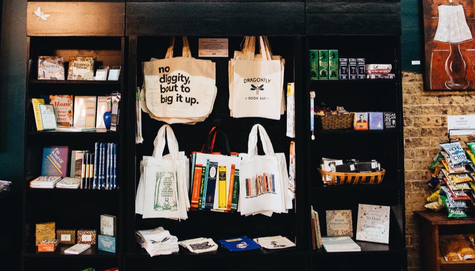 Looking for a unique gift for others – or even yourself? We definitely have you covered with stickers, bookmarks, journals, cards, book- and wine-related products, artisan items and art, and more! You can also show your love for Dragonfly Book Bar by sporting our merch.